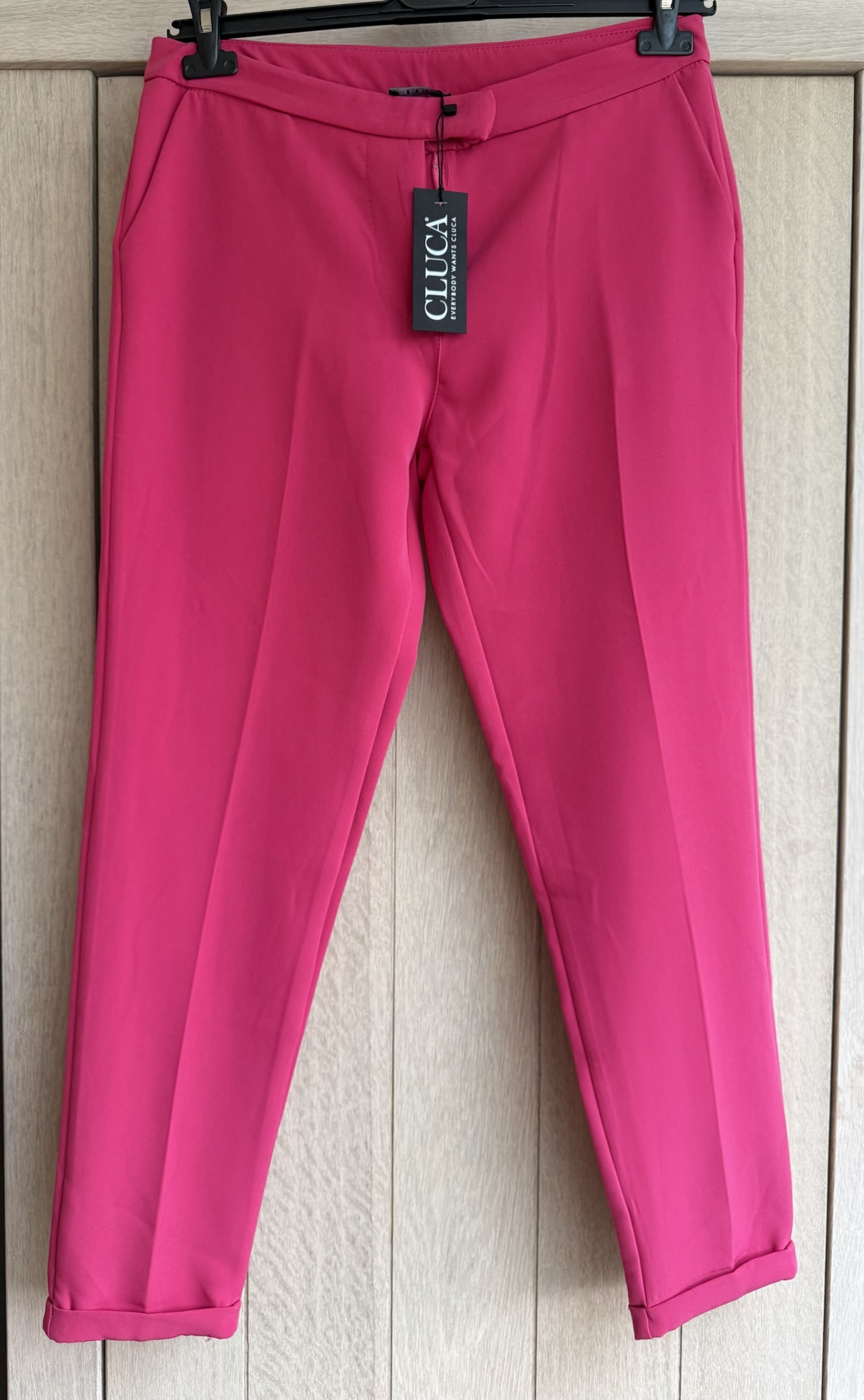 Maak een statement met de Cluca Pantalon Reno in fuchsia – een stijlvolle eyecatcher die comfort en elegantie moeiteloos combineert.